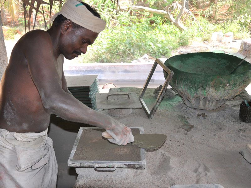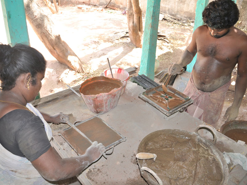 The Athangudi tiles a popular handmade decorative floor tiles, originating from a village called Athangudi in the Chettinadu region of Tamil Nadu. Athangudi tiles are completely handmade floor tiles, which add charm to the interiors of a house. These flower tiles of Athangudi stands out for its class, bringing forth the rich cultural heritage of the Chettiar community. The art of making these tiles is a traditional activity at Chettinad. The raw materials used for making athangudi tiles are the local soil, cement, baby jelly and synthetic oxides. It is unique and supreme, as it comes in a variety of colors and patterns made by a distinctive process of making tiles.