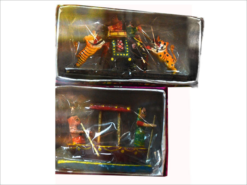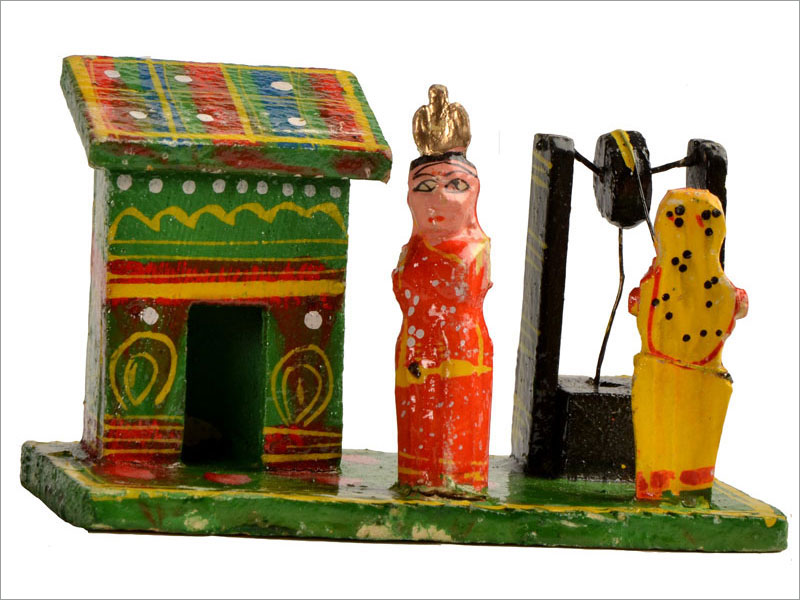 etc. is still thriving in the rural part of the country. Thus, the toys made on this theme primarily show the culture of the rural India which consequently affects the clothing style, patterns, colors, etc. shown in the toys by the craftsmen.