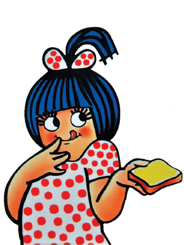 • Amul Girl Creator: Eustace Fernandes, 1967 The omnipresent girl wearing a white frock with red polka dots was the wonder creation of Eustace Fernandes in 1967. He drew the “Utterly, Butterly Girl!” with his black marker pen. She could be considered as one of the most popular brand ambassadors, narrating Amul’s story through India’s victories in Sports, playing her part as a social participant in the political scenes of India, using automobile brands of India etc. Her most memorable appearance was the one where she holds the butterly toast in one hand with her licking the taste of Amul butter. The character design compliments “Utterly, Butterly – Delicious Amul” punchline used for Amul butter.