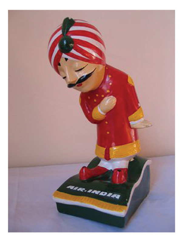 • Maharajah Concept: Booby Kooka (Erstwhile Director, Air India) Execution: Umesh Rao, J. Walter Thompson, 1946 Composed in a typical red gown and white Chudidaars with wavy yellow borders, the first glance of this Maharajah would symbolize royalty. Though, for its creators the form symbolizes an epitome of luxurious living, graciousness, hospitality. His first entry was on an Air India memo pad expressing Air India’s promotional messages to travelers in India. The global appeal has taken him to acquire different personalities in different countries. A pavement artist, a monk, a lover boy in Paris, a sumo wrestler in Tokyo, our Maharajah has played different roles successfully to become an international brand ambassador for Air India. The charm and the wit displayed by Maharajah with his oversized and arched up moustache gives a distinctive look.