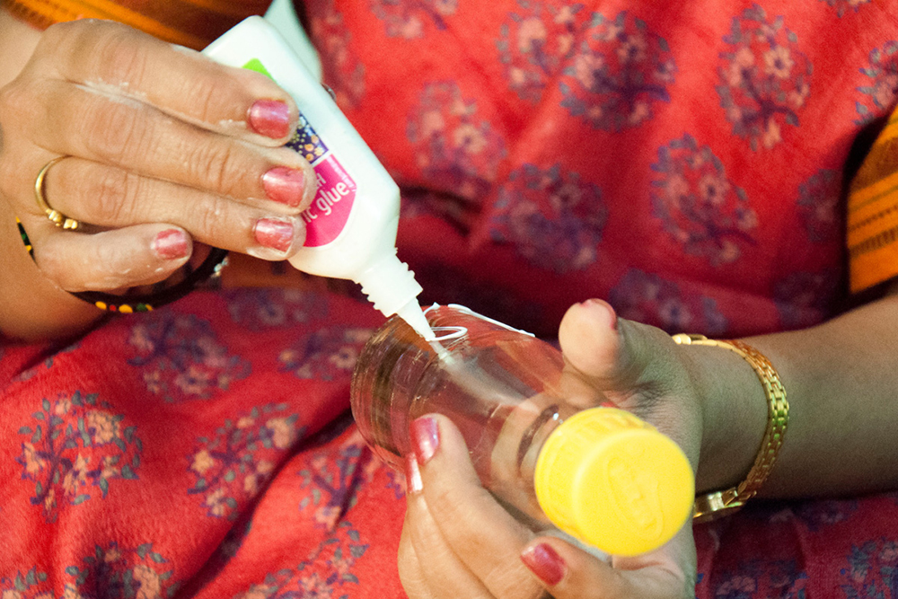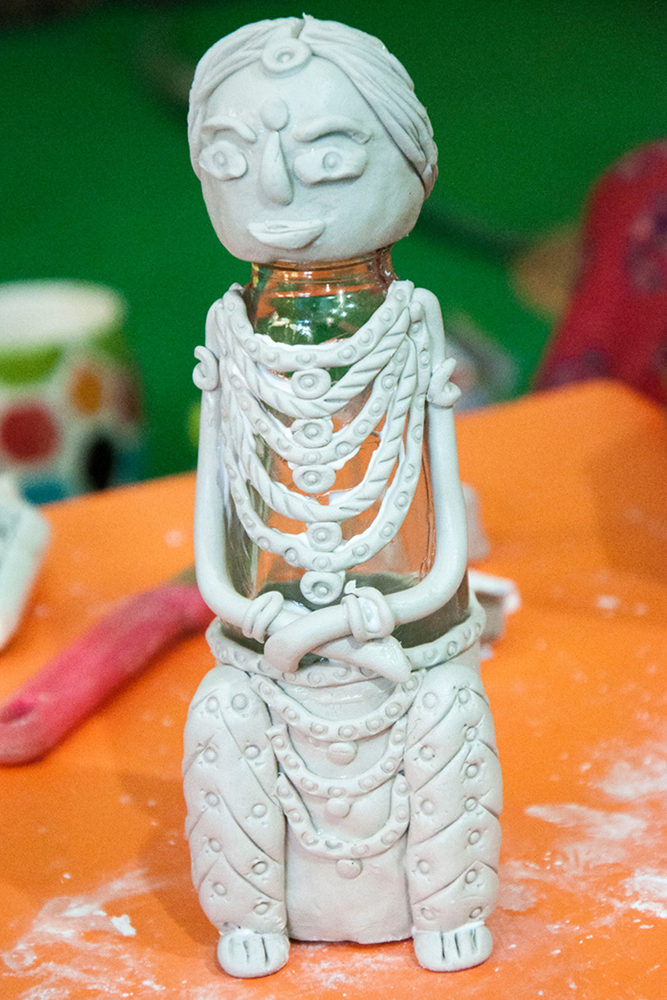 The tribal lady bottle is an innovative artwork made of a small sauce bottle and white M-SEAL. The product is exclusively developed to recognize the importance of our tribal communities who treasures age-old cultures and ethnicities. The bottle holds the shape of a tribal woman dressed in their tribal attire and jewelry. The reason behind the initiative is to exhibit their culture and, in this way, get more people aware of the Maharashtrian tribes. Mrs. Vaishali H. Kawre is an artisan from Nagpur who preserves this unique art.