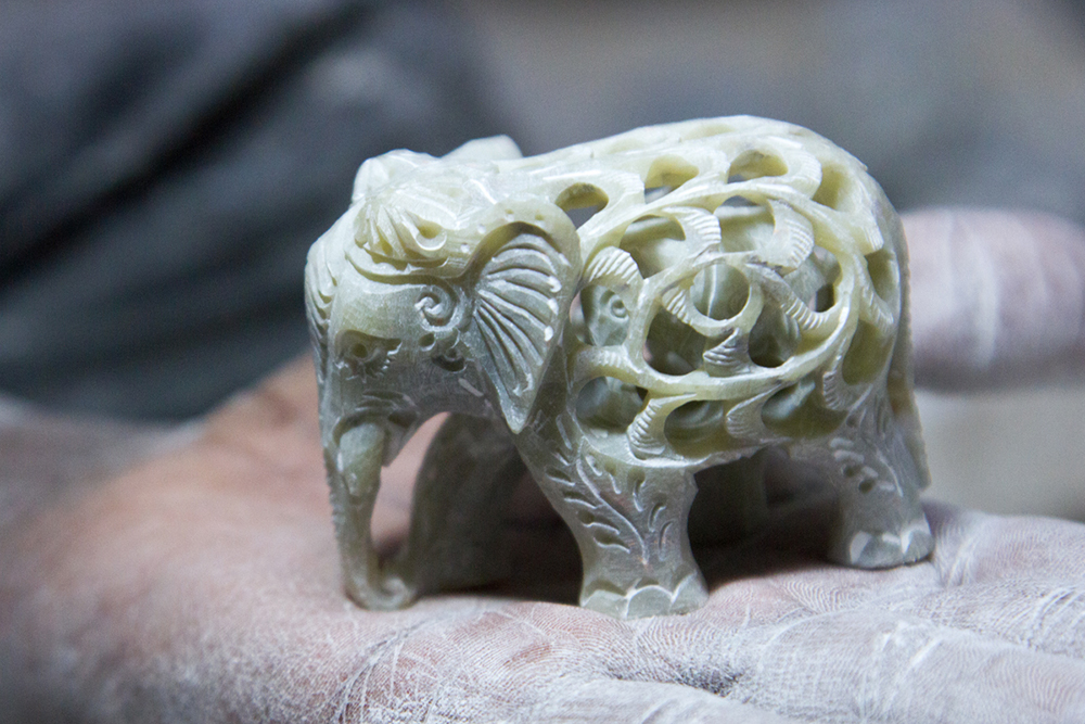 Varanasi is a major center for stone carving in Uttar Pradesh. Stone carving has been happening for a long time, even in ancient times. In northern India, undercut carving is popular. One famous product is an undercut elephant.