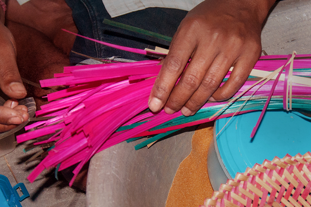 • Water: Water is boiled, and the dying colour is added to die the bamboo strips.