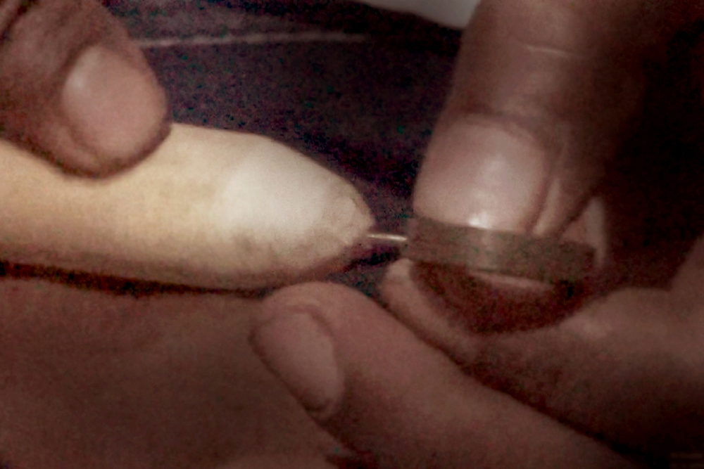 rolling the bamboo strips.