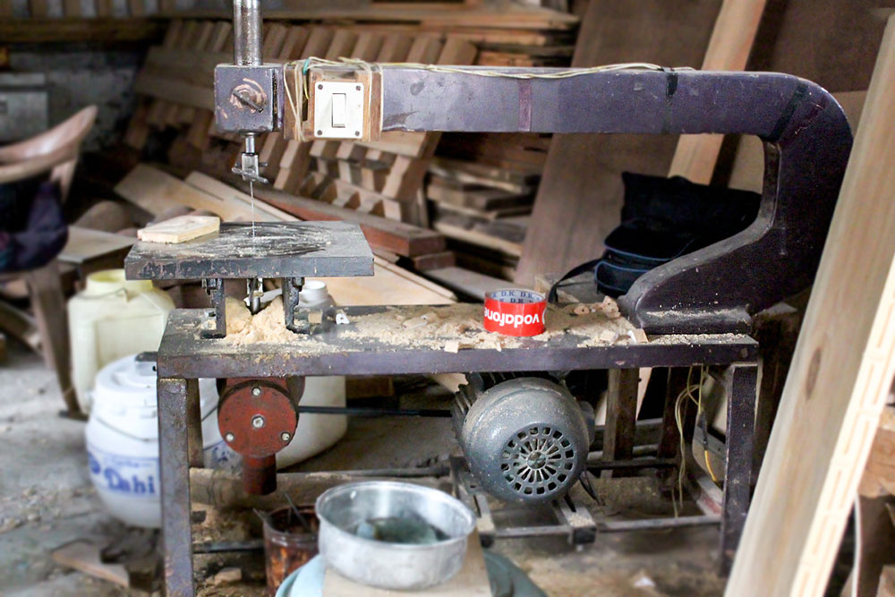 • Motorized Coping Saw: This motorized coping saw is used for cutting intricate shapes of wood.