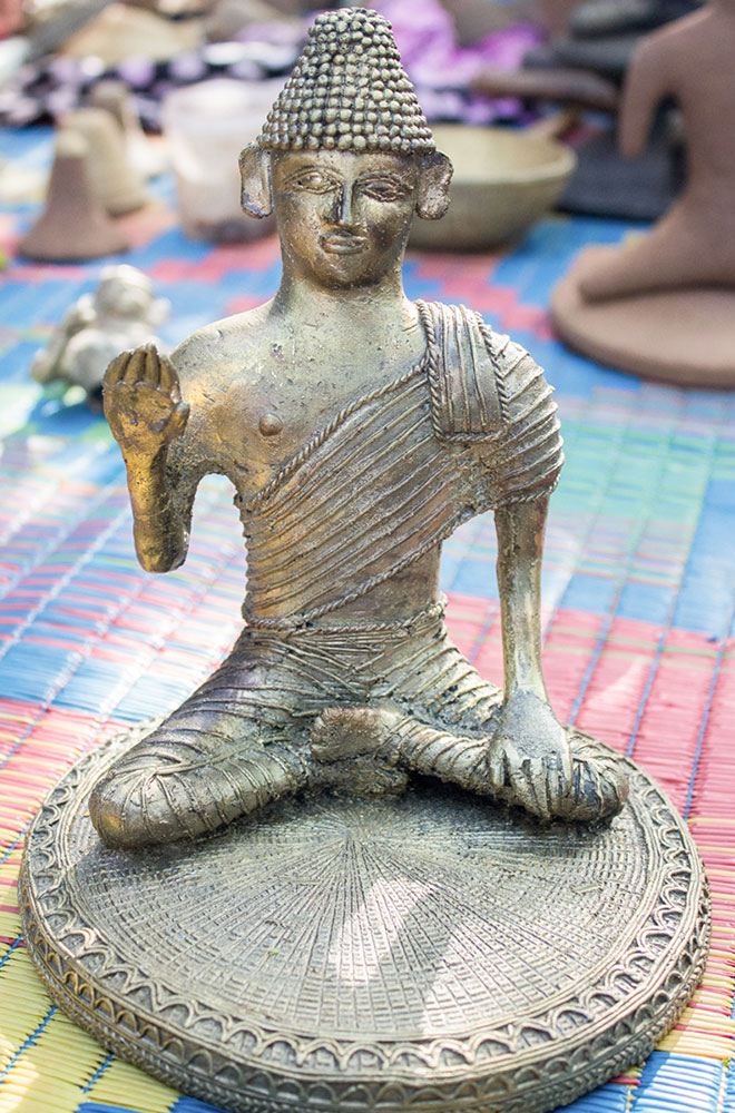 The products made as per the requirement of the customers. Though many a times the products are made out of single metal sometimes when needed using five alloys (Panchaloha) the final products are prepared. Artisans usually take up only order based work with an advance. Some of the products that could be found here are: Lord Buddha, Birds, Designer diya, Idols of gods and goddess, Animals, Reptiles like turtles, Jingles, Wall hangings, Designer bowls and etc. Typical dhokra artifacts usually cost between INR.300-500.