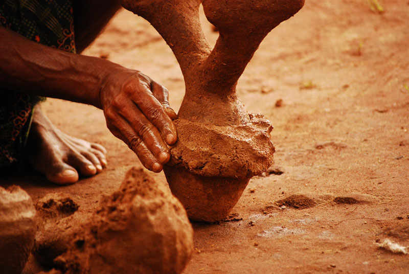 While making the model, a separate pot filled with a sufficient amount of brass scrap is made. One side of the pot is kept open, which is then joined to the channel of the model and is fixed permanently with clay. It is then kept in sun to make it dry.