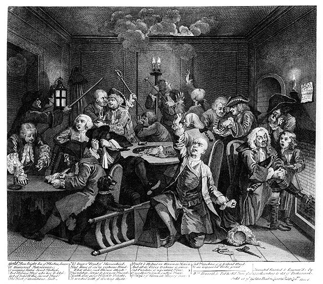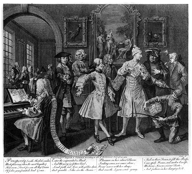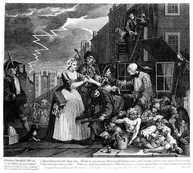 Among the examples mentioned above, Hogarth’s work is particularly important, as he wrote satirical pieces using a series of pictures put together in a style similar to modern-day comic strips. A Rake's Progress (1726) is composed of eight different canvases, each with text at the bottom, which formed a narrative when put together. His other sequential work, A Harlot’s Progess (1731), follows the same format (see 2.3 to 2.10). This is a series of paintings which were later converted to engravings (only the engravings survive today). All of this informs us that, well before the modern era of comics and graphic novels, pictures were used in combination with text to form narratives, across cultures and geographical locations. One could thus argue that William Hogarth’s work was a precursor to the ‘panels’ format that is so common to comic strips and graphic novels today.