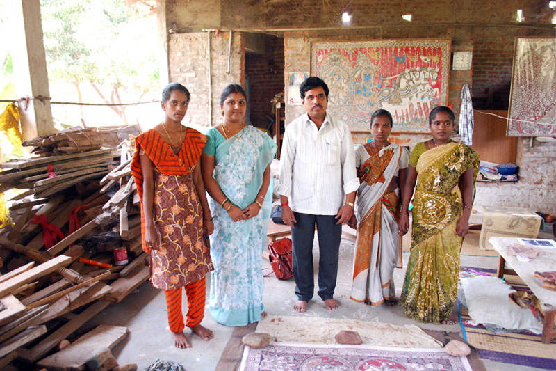 Sri Kalahasti is located 37Km away from Tirupati in Chitoor district in Andhra Pradesh. Sri Kalahasti is well known for its traditional Kalamkari printing. The word Kalamkari is derived from the word Kalam-bamboo pen and Kari-craftsmanship. Kalamkari is a type of fabric printing traditionally done on the cotton cloth using natural materials without adding any chemicals. The craft was originated during the period of Sri Krishnadevaraya and later it is patronized by Dr. Kamala Devi Chattopadhyaya. The availability of natural raw materials, good and supporting climatic conditions, abundant river water from Swarnamukhi river etc. together make Srikalahasti an ideal place for the production of Kalamkari. Kalamkari prints illustrate episodes from puranas like Ramayana and Mahabharata.
