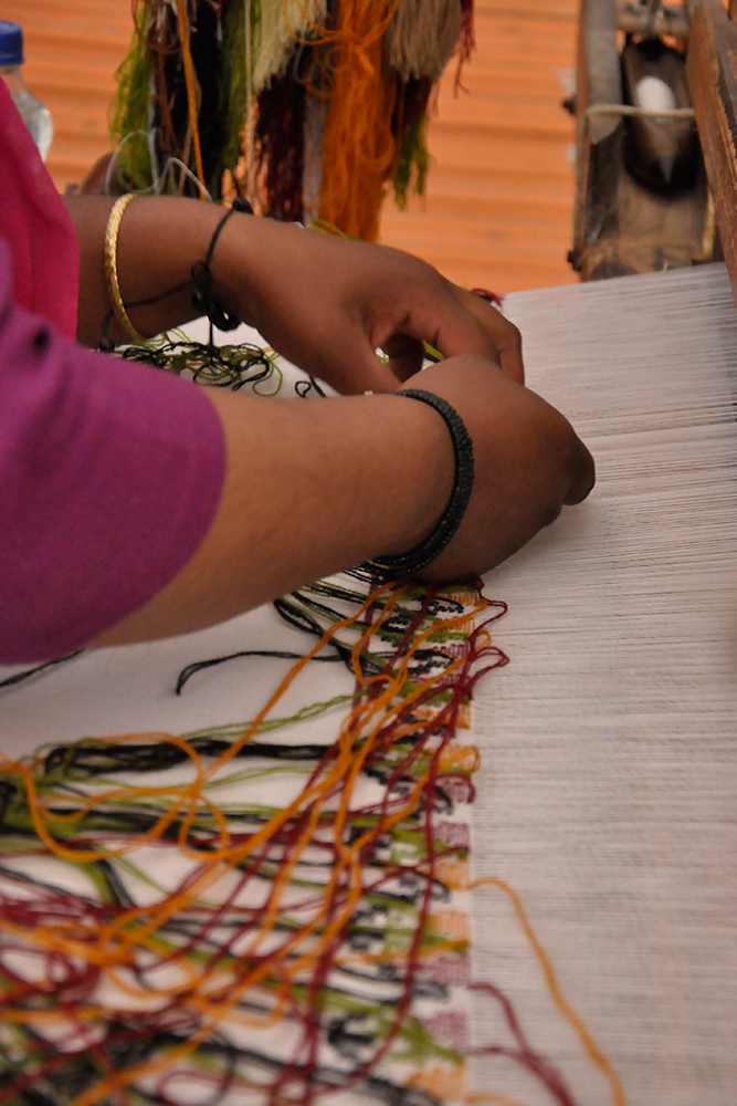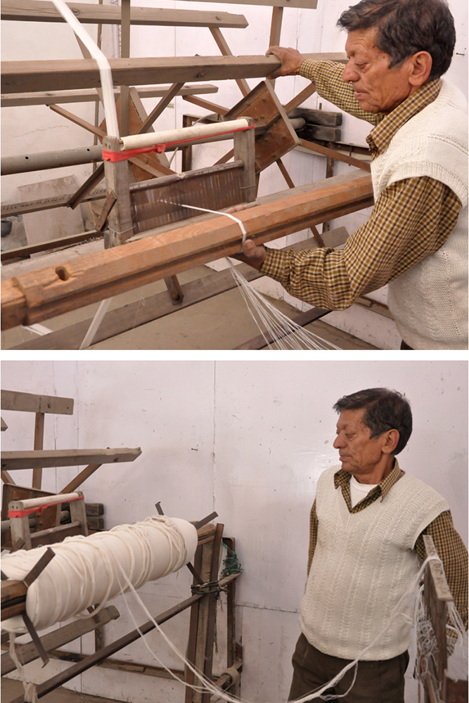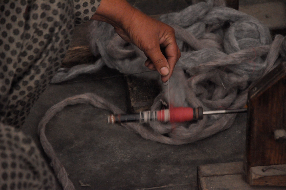 The process of shawl weaving begins with the basic raw material like Sheep, Angora, or Pashmina wool. Good quality wool is spun by using a spinning wheel. The extracted yarn is wounded into a bundle. The spindles are loaded with woolen threads. These spindles are inserted into a fly shuttle. Artisans follow the same old weaving technique which was practiced by their ancestors. Weavers still use the Pit and frame looms. The designs are embroidered by hand, and weaving is done.