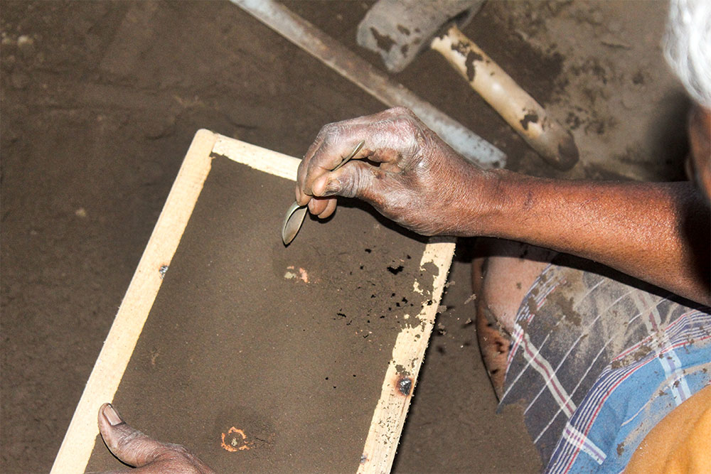 After grinding, it is sent for polishing work. Once the polishing is done, it's sent for design engraving. It is done by hand using various types of chisels. After engraving, the lamps are sent for final polishing. After this polish, the lamps will be glowing. The lamps are now packed and ready for sale.