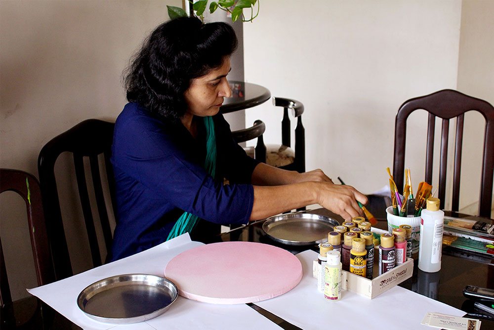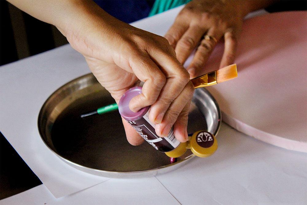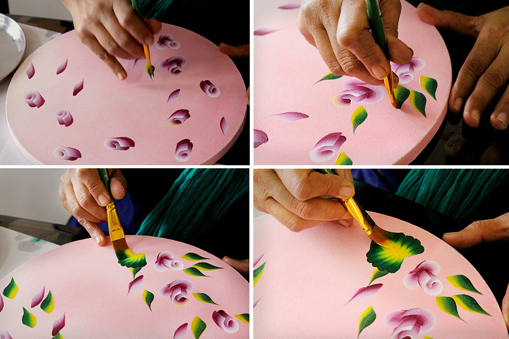 To give depth to the bud detailing is done with the same style but different angles by painting in one stroke technique. The third layer of paint completes the bud. Then the artist paints petals to give the feel of a flower.