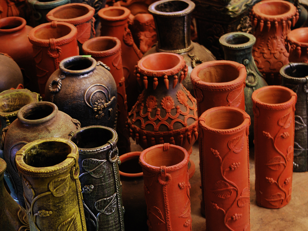 Some of the recurring forms which are repeated mostly are either the lamps or the pots which are in cylindrical forms. Both these shapes are made to look attractive by the style in which they are painted.