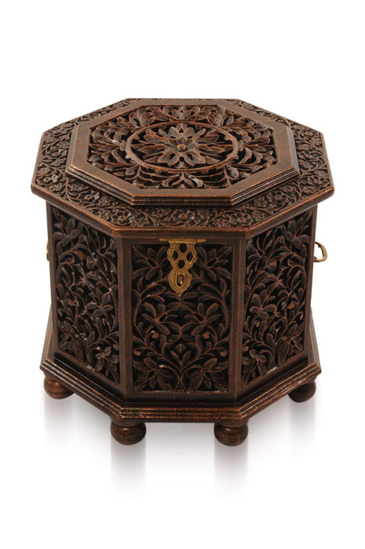 The ‘typical’ product range includes decorated furniture (sofa sets, chairs, tables, stools, wall brackets, closets etc.), candle holders, screens, room-dividers, tableware (bowls, trays, cooking spatula etc.), boxes, mirror frames, book-shelves, pen stands and children’s toys. Apart from these, the craftsmen are trying out newer products and materials every day to innovate upon the existing product categories.